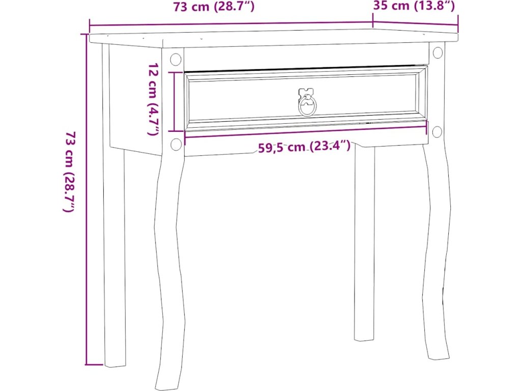 Konzolový stolek Corona 73 x 35 x 73 cm masivní borové dřevo [4002776]