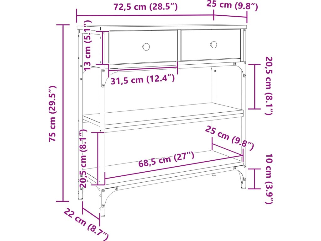 Konzolový stolek se zásuvkou Artisanový dub 72,5 x 25 x 75 cm [863520]
