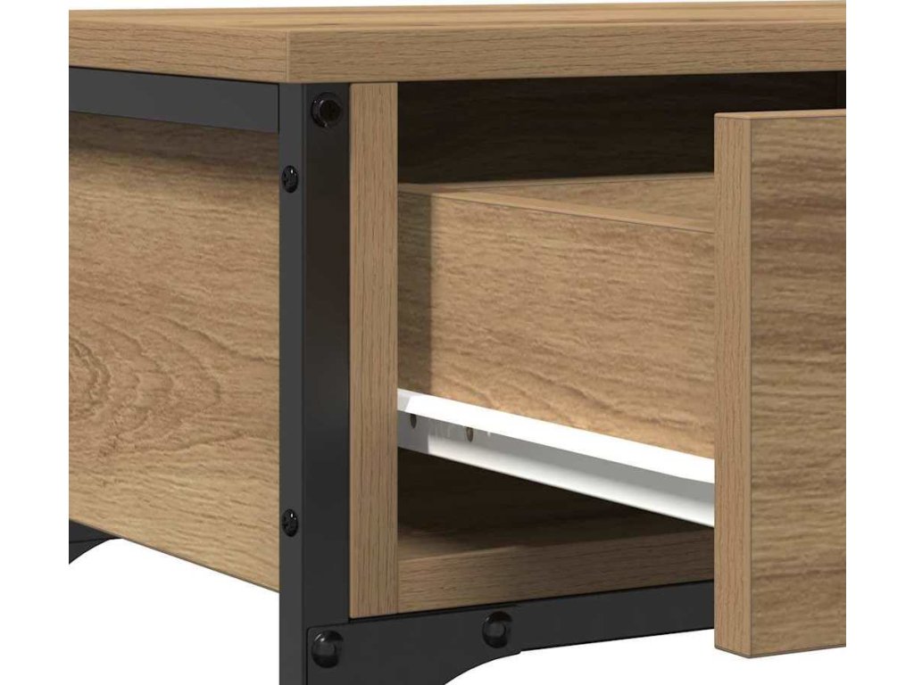 - Součásti: Stůl má policové desky z pevného kompozitního dřeva, což maximálně využívá úložný prostor. Obsahuje zásuvky z kompozitního dřeva, co jsou perfektní na organizaci tvých věcí. Ocelové nohy dodávají industriální design a zajišťují stabilní oporu.