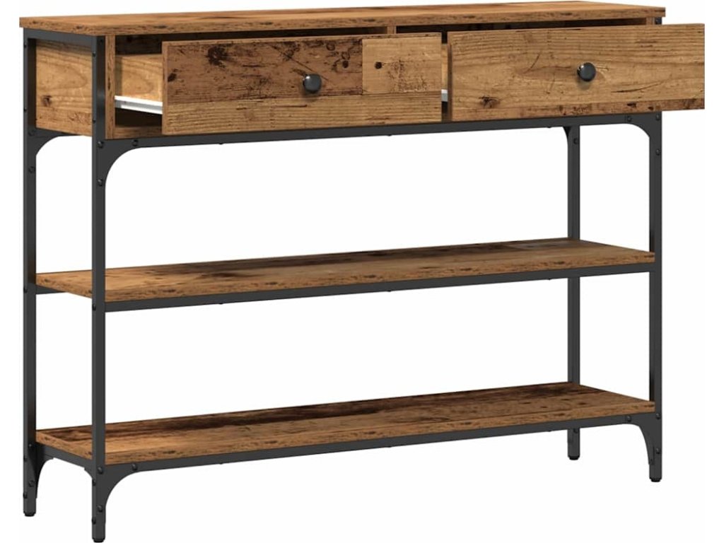 Tenhle konzolový stolek v industriálním stylu má elegantní a funkční design, perfektní pro obývák. Obdélníkový tvar mu dává šanci stát hezky u zdi a nabízí ti místo na vystavení nebo úložiště. Skvělý pro ty, co mají rádi surové materiály, tenhle stůl spojuje kompozitní dřevo a ocel pro dlouhotrvající a stylový vzhled. Ideální pro městské prostory nebo lofty, dodává moderní nádech a je to super kousek pro různé interiéry.