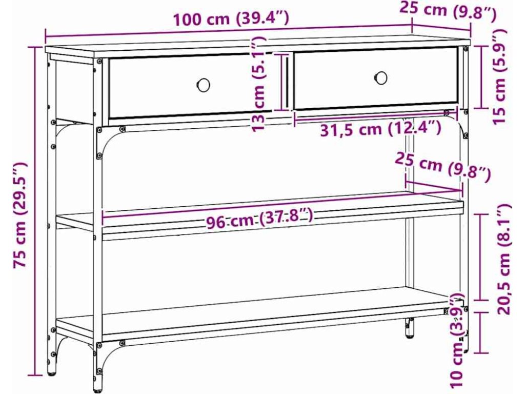 - Doporučené použití: Díky své univerzálnosti se tenhle stůl hodí do obýváků, hal nebo vstupních prostor. Je úzký, takže je skvělý pro menší prostory, ať už jako dekorace nebo praktický povrch pro různé věci.