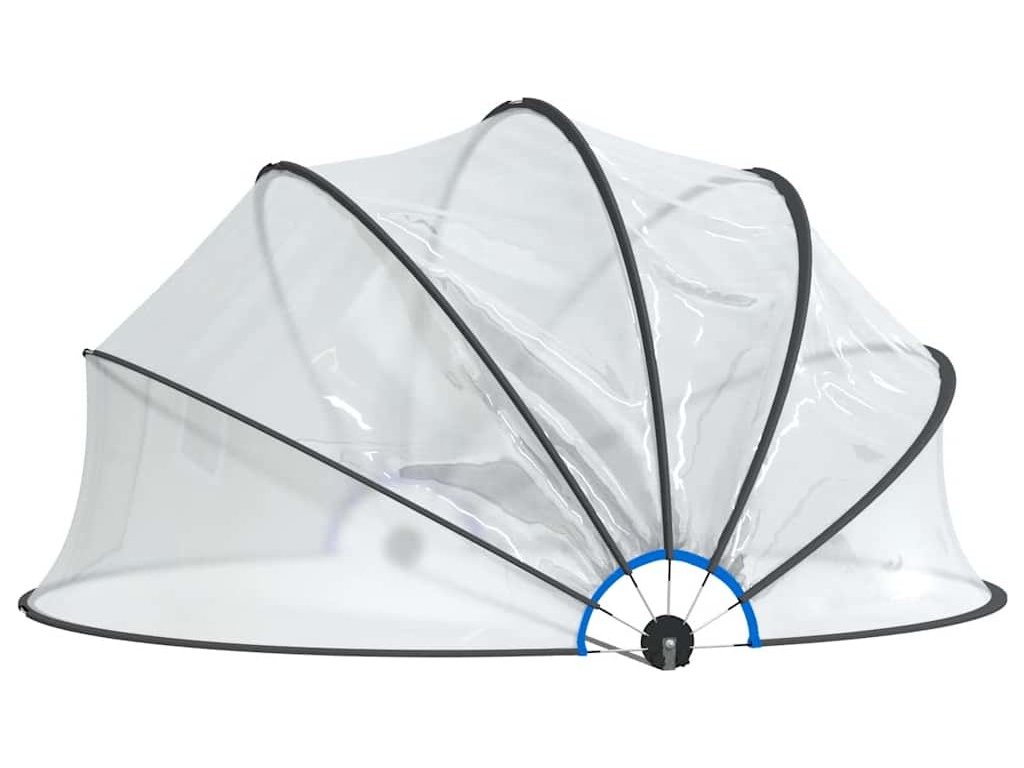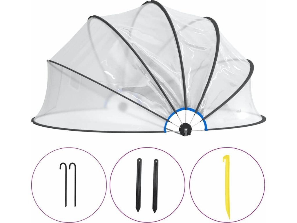 Kryt na bazén je vyrobený z PVC UPF 30 a má konstrukci ze sklolaminátu, poskytne tedy dokonalou ochranu před sluncem a deštěm. Zabrání také, aby do bazénu zvenku pronikly nečistoty, jako je listí, hmyz a prach. Pokud je to nutné, zaručí také rychlejší ohřev vody a sníží tepelné ztráty během noci. Kopule s unikátním systémem se závěsy se snadno otvírá a zavírá. A jelikož je transparentní, umožňuje dobrý výhled po okolí bazénu. K pevnému ukotvení kopule do země se dodávají zemní hroty a kotvicí háky do země. Nemusíte se tedy obávat, že kopuli bazénu odnese vítr.