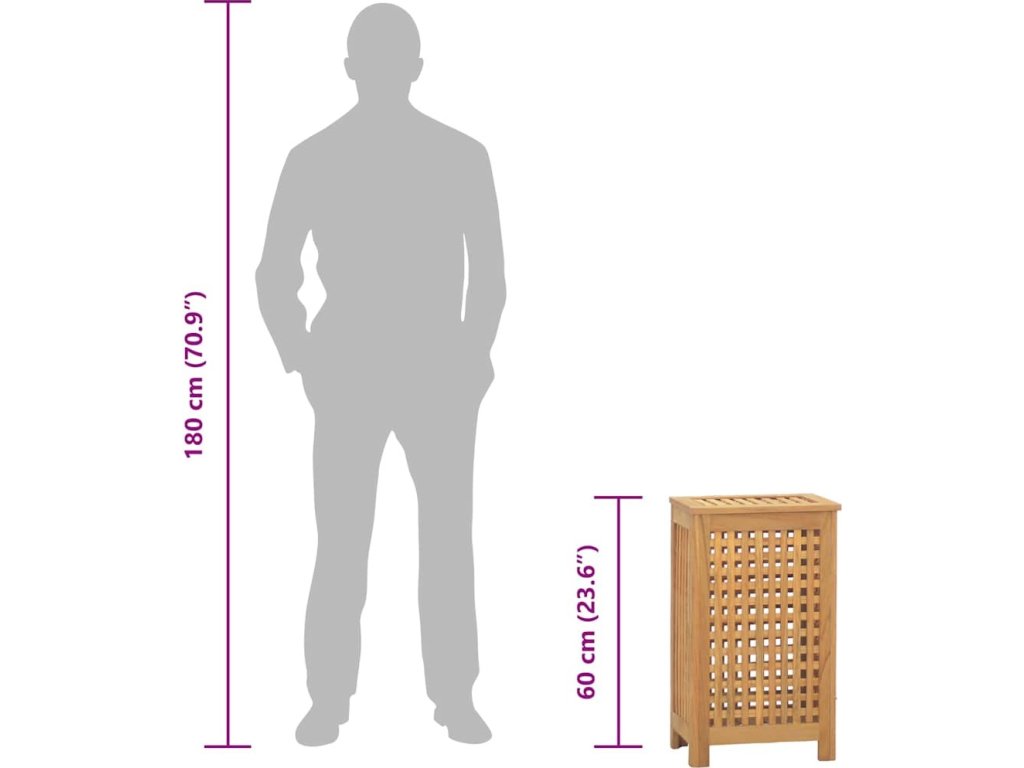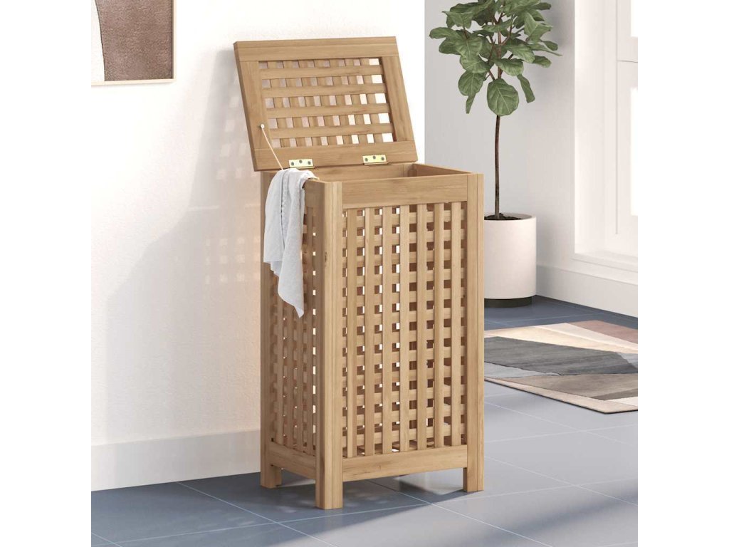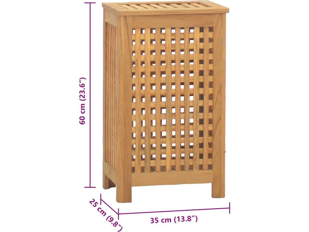 Koš na prádlo 35 x 25 x 60 cm masivní teakové dřevo [340760]