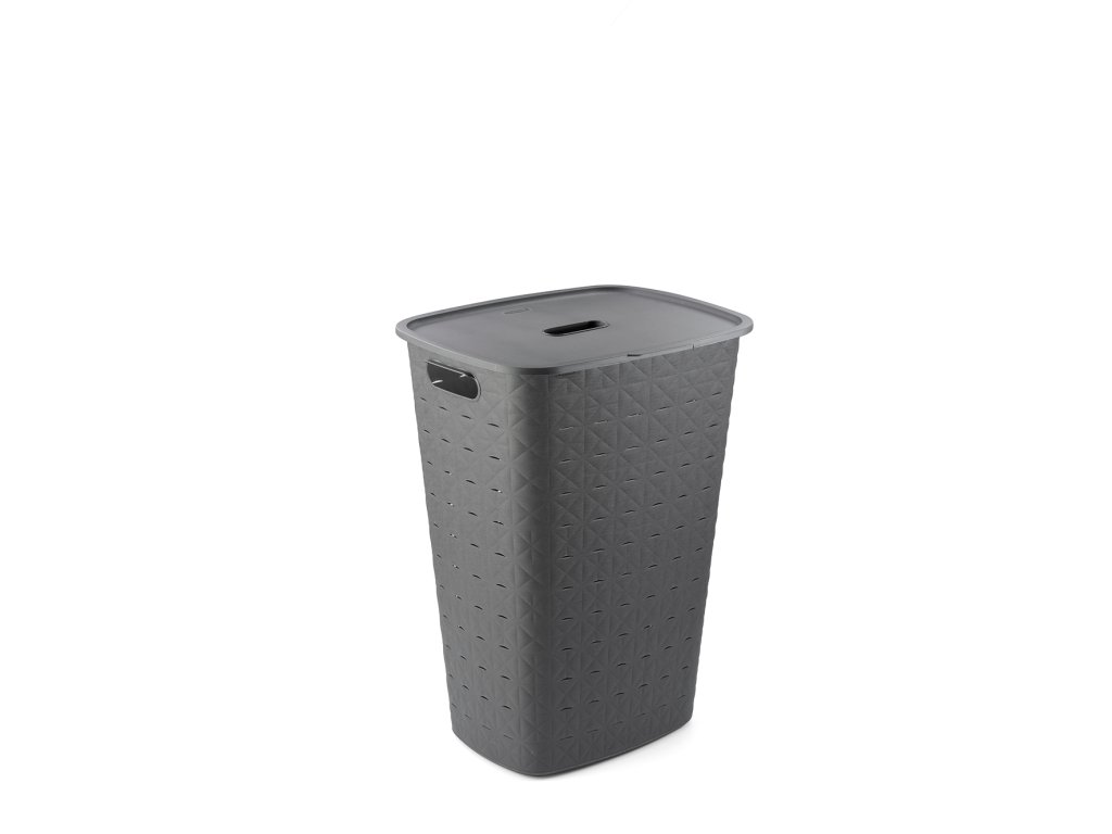 Tento stylový a praktický koš na prádlo se vyrábí ze 70% recyklovaného plastu. Je tedy šetrnější k životnímu prostředí. Zdobí ho jemná textura v podobě trojúhelníků a čtverců, která připomíná prošívanou tkaninu. Doplní vybavení každé domácnosti.