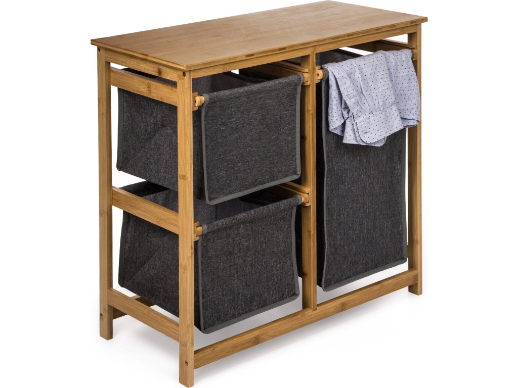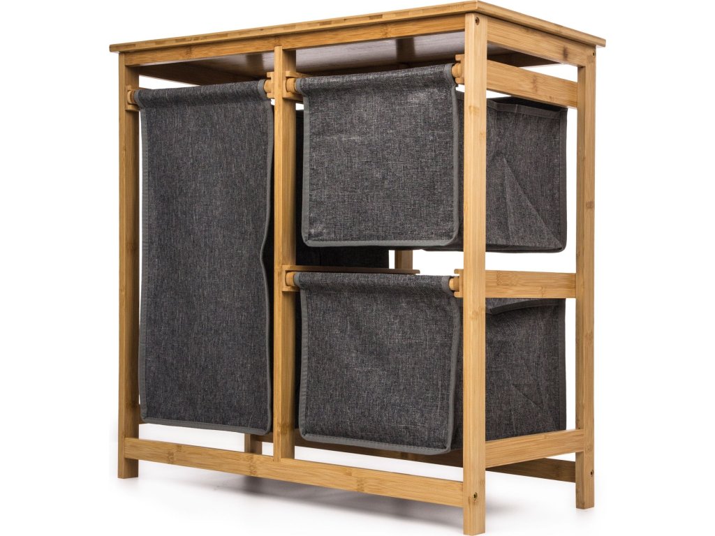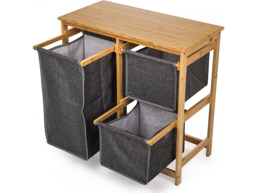 Kam s prádlem, ať už špinavým na vyprání nebo čistým na uložení? Do lehkého a zároveň pevného a stabilního, nenápadného a přitom designově zajímavého bambusového prádelního koše se třemi úložnými výsuvnými boxy. Každý z boxů unese samostatně až 10 kg prádla.