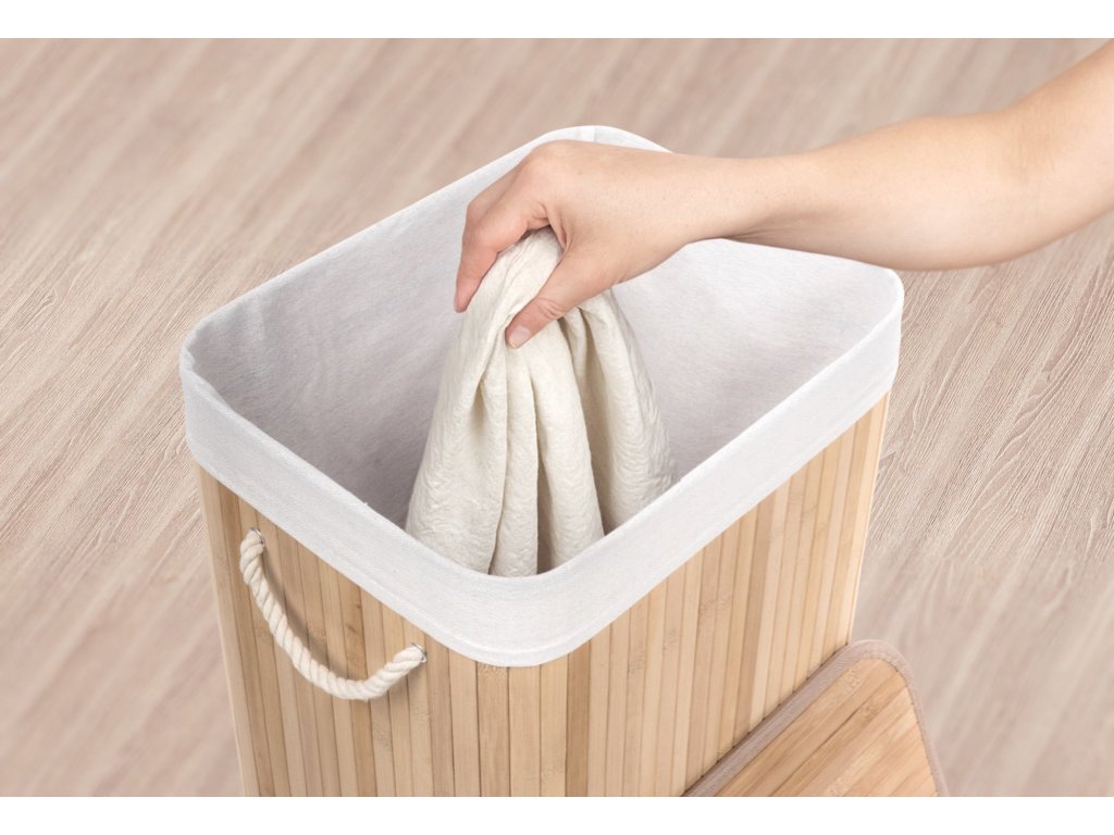 Bambusový koš s pratelnou látkovou vložkou přidává interiéru příjemný přírodní dojem. Jeho jemné a teplé barvy mohou oživit a doplnit jakýkoliv prostor bez ohledu na jeho styl – skvěle ladí s rustikálním i moderním nebo minimalistickým interiérem, přizpůsobí se stylu vašeho domova.