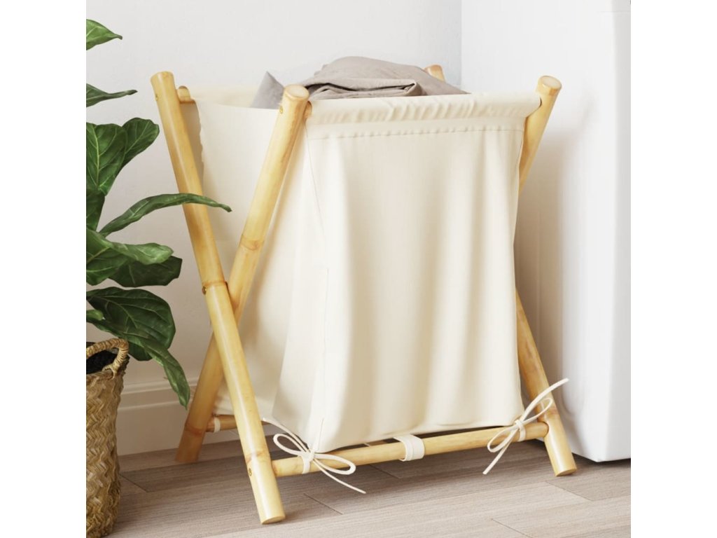 Koš na prádlo krémově bílý 45 x 55 x 63,5 cm bambus [368035]