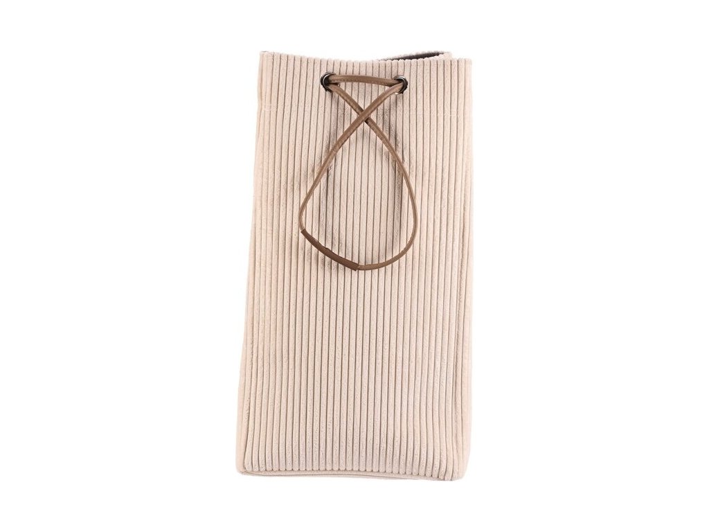 Stylový látkový koš na prádlo v podobě vaku z jemného manšestru zaujme elegantním pruhovaným vzhledem a příjemným materiálem na dotek. Díky praktickému stahování se snadno uzavírá a udrží obsah hezky skrytý. Skvělý doplněk do ložnice, koupelny nebo šatny, který spojuje funkčnost s moderním designem.