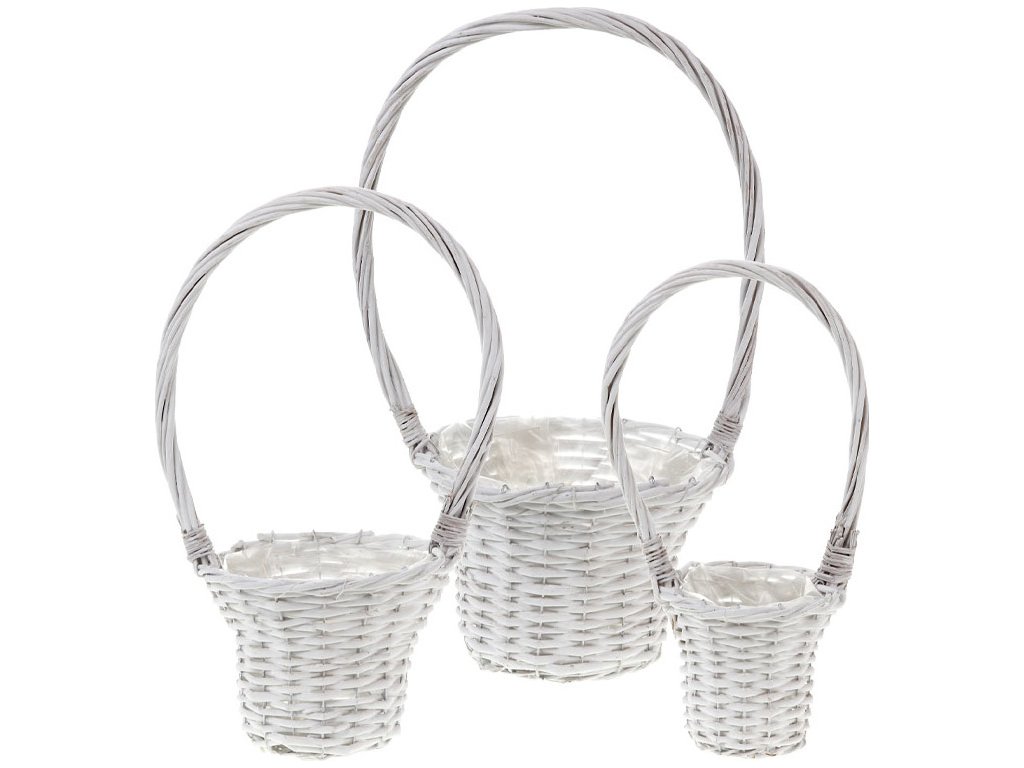 Košík dekorační proutěný s uchem a igelitem, sada 3 kusy , barva bílá PD138 [138]