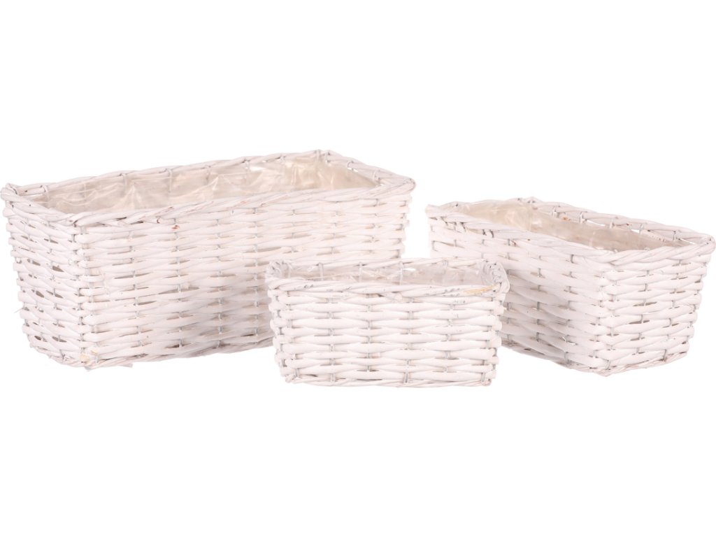 Košík proutěný - hranatý truhlík, bílý, cena za sadu 3 ks OV4140 WT