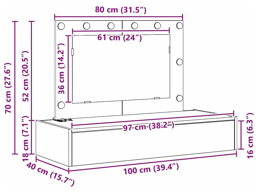 - Integrace plochého zrcadla: Plochý povrch zrcadla zajišťuje jasné odrazy, které jsou ideální pro každodenní úpravy. Jeho jednoduchý design zvyšuje moderní vzhled stolku a splňuje funkční i dekorativní účel.
