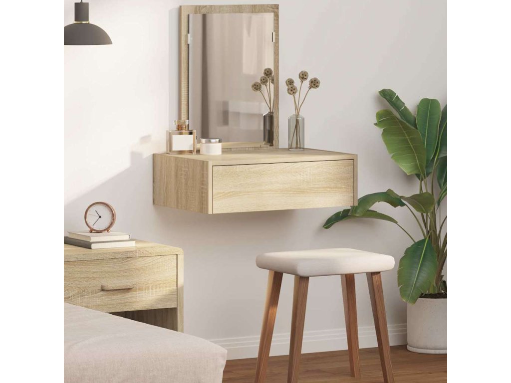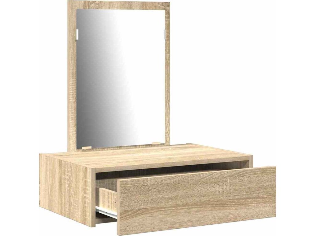 - Integrace plochého zrcadla: Plochý povrch zrcadla zajišťuje jasné odrazy, které jsou ideální pro každodenní úpravy. Jeho jednoduchý design zvyšuje moderní vzhled stolku a splňuje funkční i dekorativní účel.