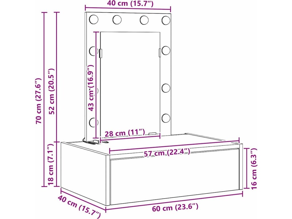 Kosmetický stůl Hnědá 60 x 40 x 70 cm kompozitní dřevo [865223]