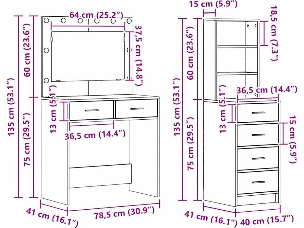 - Údržba a péče: Údržba je jednoduchá. Stačí otřít suchým hadříkem, abys ho udržel v dobrém stavu. Vyhněte se agresivním chemikáliím, abys ochránil jeho povrch, takže toaletní stůl ti vydrží spoustu let.