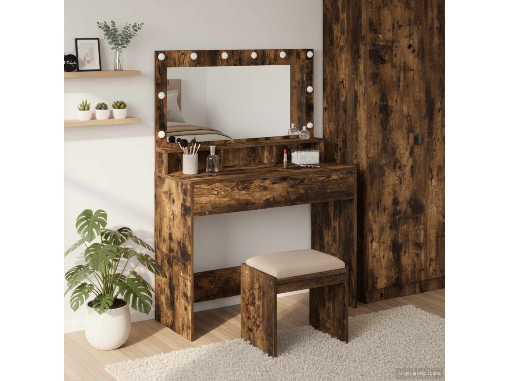 - Materiály: Vyrobený z kompozitního dřeva, tento toaletní stůl je robustní a spolehlivý. Kompozitní dřevo je vybrané pro svou trvanlivost a pěkný vzhled, takže dlouho vydrží. Je odolný vůči deformacím a poškození, což znamená, že tvůj nábytek má dlouhou životnost.