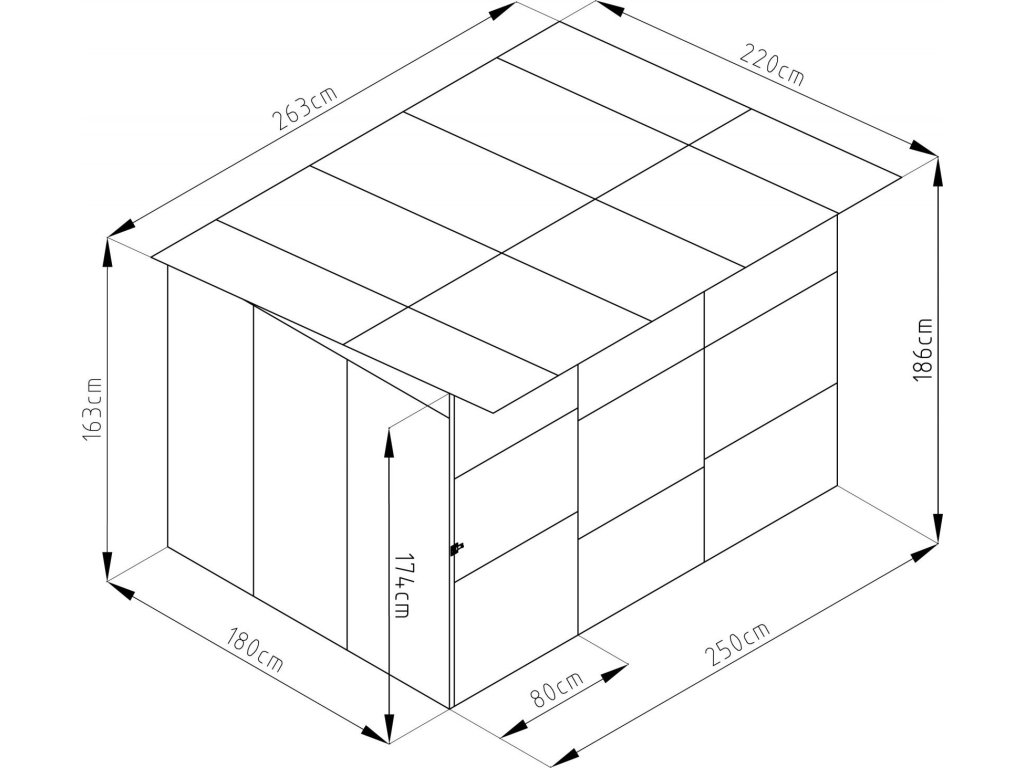 - Rozměry - vnější (Š x V x H): 260 x 186 x 220 cm