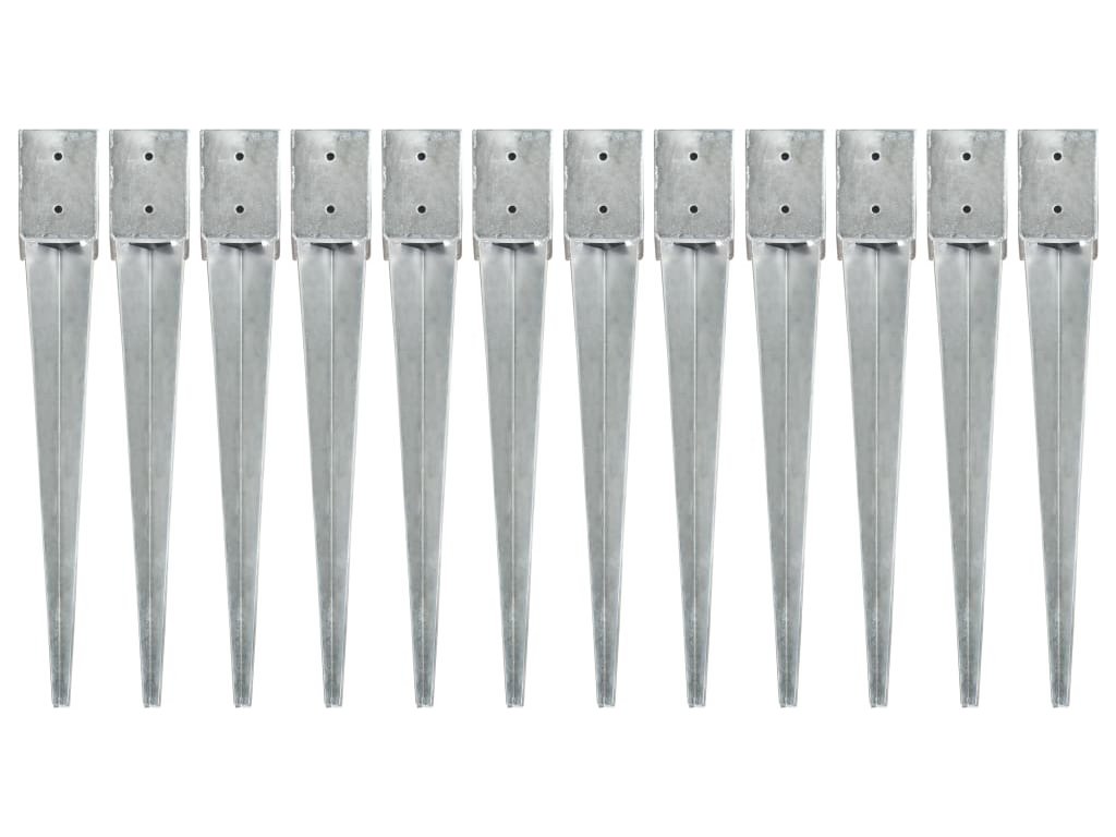 Kotvící hroty 12 ks stříbrné 10 x 10 x 76 cm pozinkovaná ocel [145421]