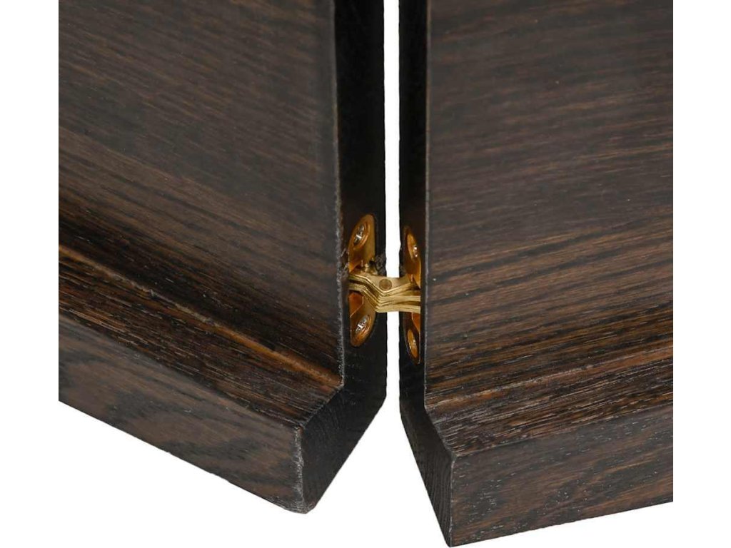 - Materiál: masivní dubové dřevo s tmavou povrchovou úpravou