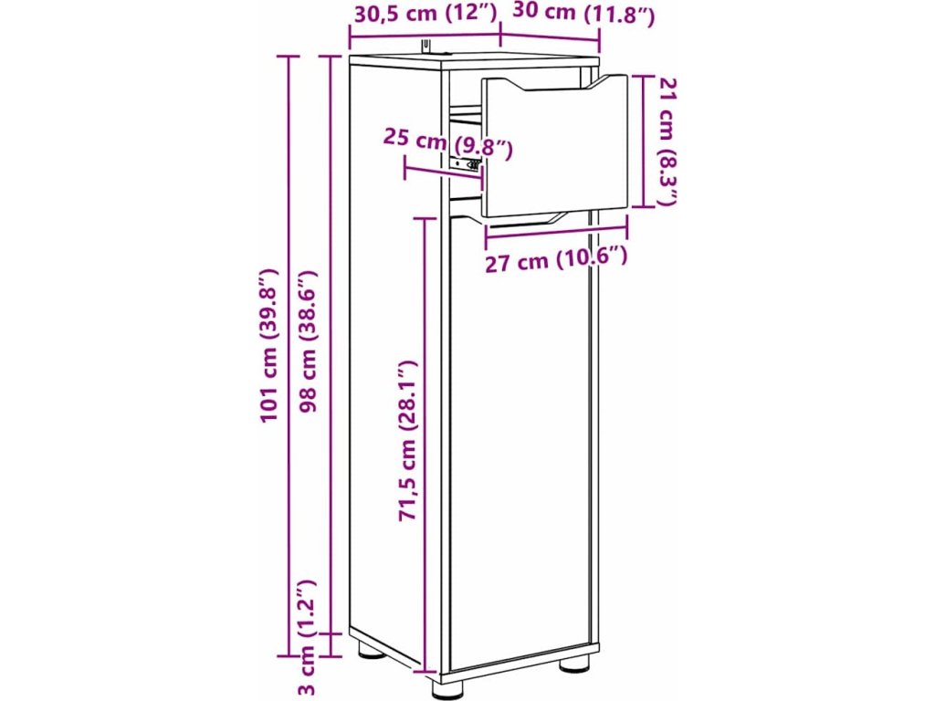 - Celkové rozměry: 30,5 x 30 x 101 cm (D x Š x V)