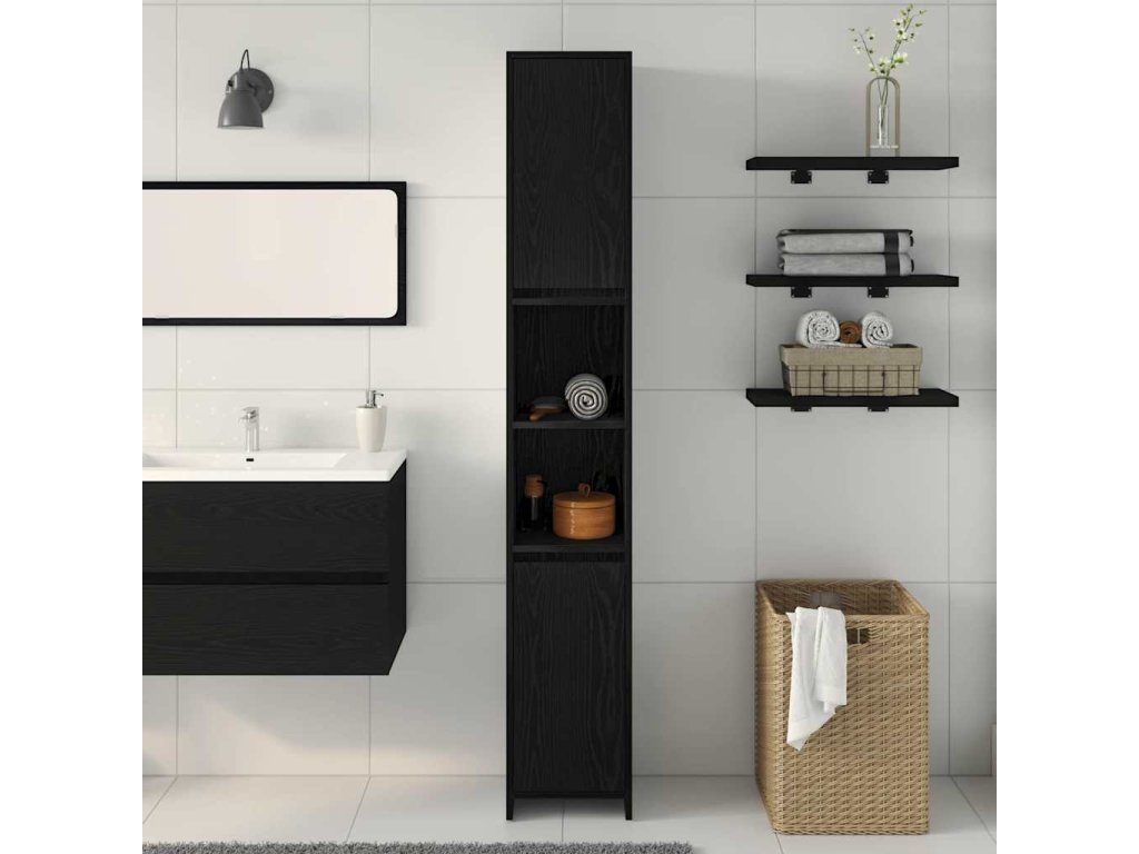 Koupelnová skříň Černý dub 30 x 30 x 183,5 cm kompozitní dřevo [862505]