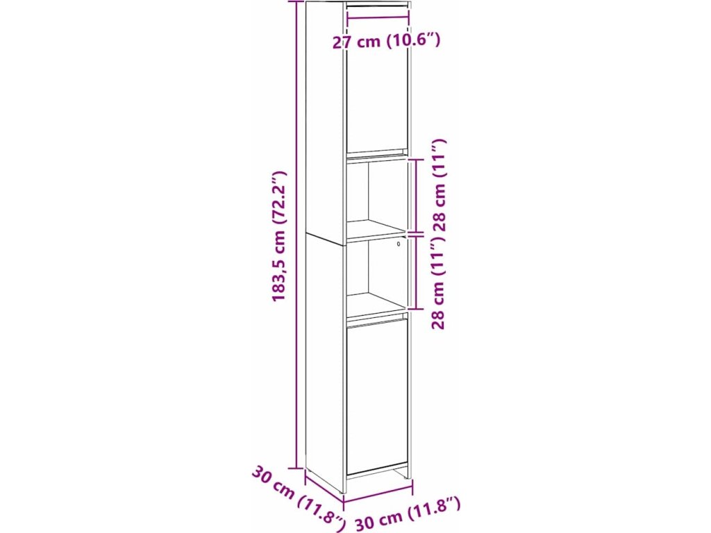 - Celkové rozměry: 30 x 30 x 183,5 cm (D x Š x V)
