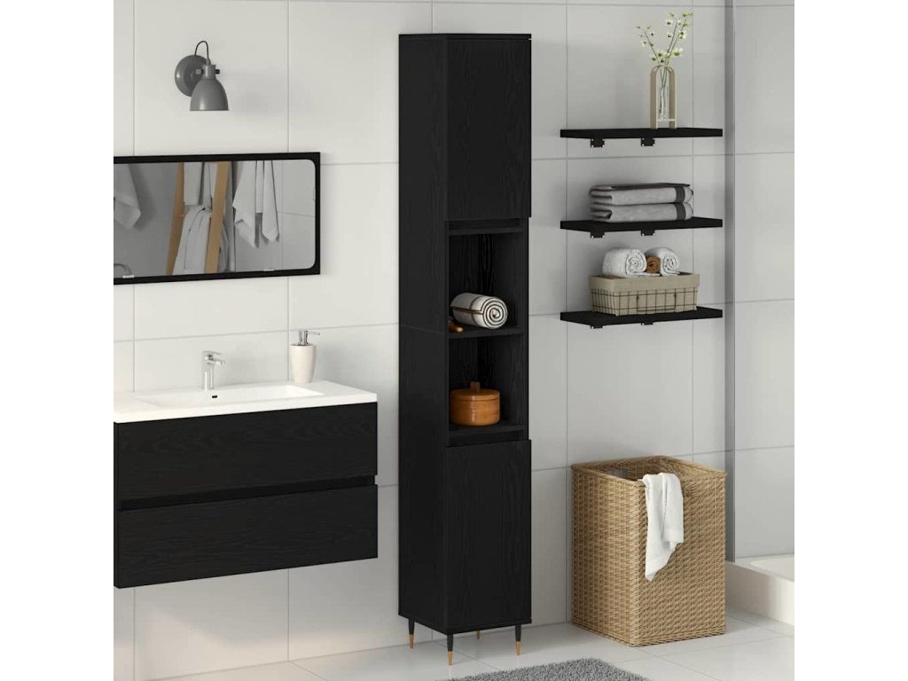 Koupelnová skříň Černý dub 30 x 30 x 190 cm kompozitní dřevo [862881]
