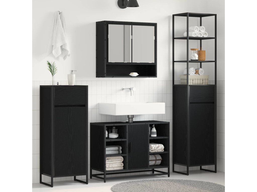 - Odolná konstrukce: Skříňka je robustní a navržená pro dlouhodobé používání. Kombinace kompozitního dřeva a ocelových nohou dodává stabilitu a pomáhá zvládat náročné prostředí koupelny.