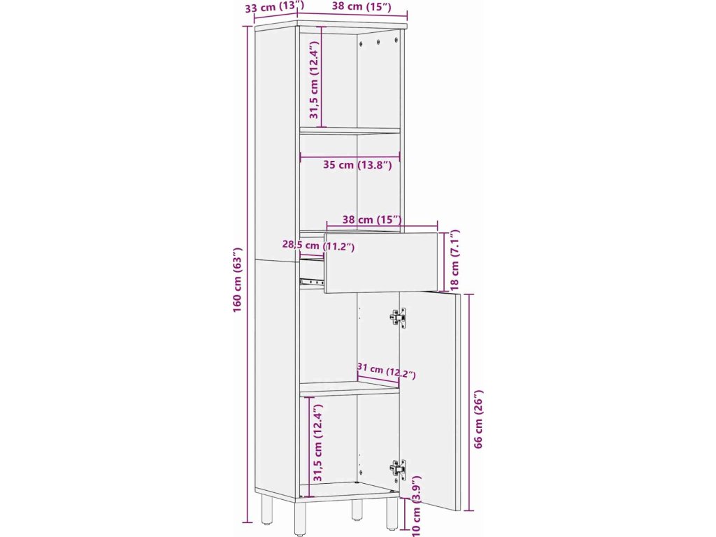 - Celkové rozměry: 38 x 33 x 160 cm (D x Š x V)
