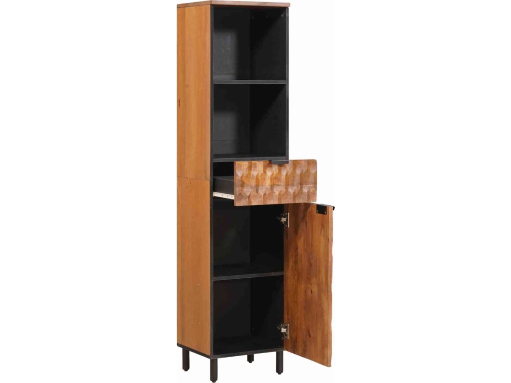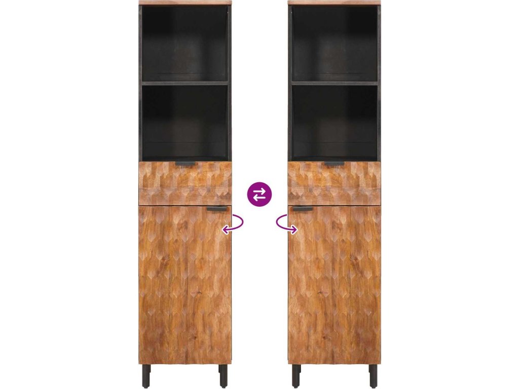 - Materiály: Konstrukce z masivního magnovního dřeva, které je super pevné a má krásné teplé tóny, dělá tuto skříňku trvalou součástí vaší koupelnové výbavy. Přírodní vzory ve dřevě dodávají prostoru šarm a originalitu a zároveň zajistí výbornou odolnost.