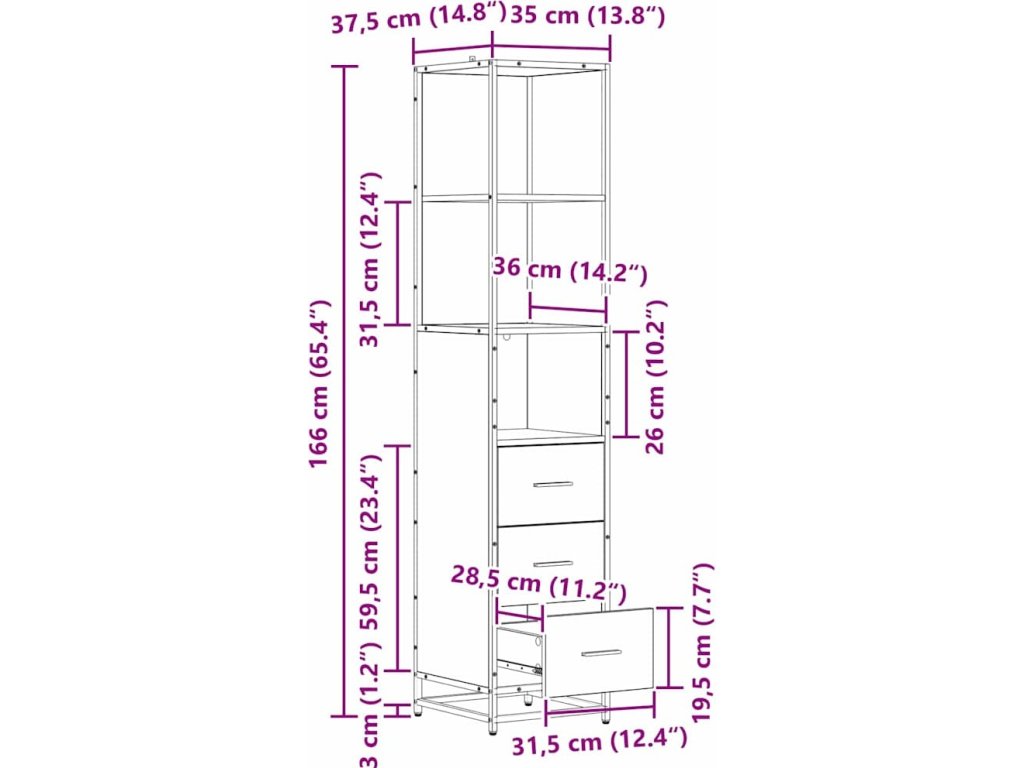 - Celkové rozměry: 35 x 37,5 x 166 cm (D x Š x V)