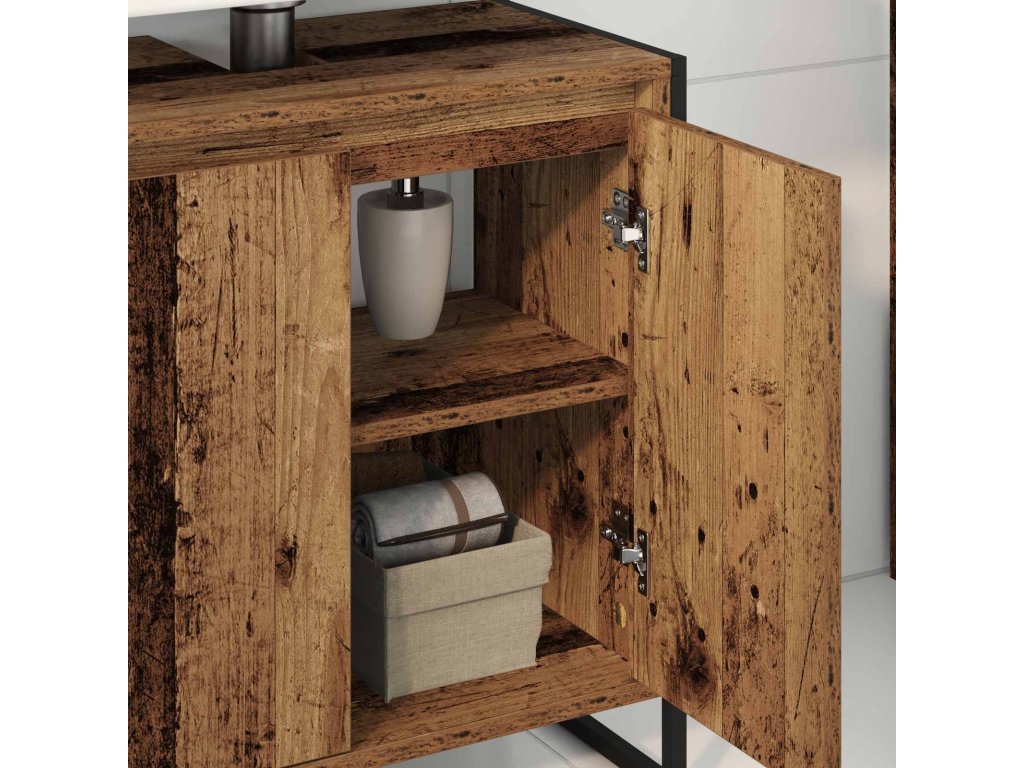 Naše industriální koupelnová skříňka z kompozitního dřeva je šikovné úložné řešení pro vaši koupelnu. Vypadá skvěle a je praktická, což z ní dělá ideální volbu pro organizaci toaletních potřeb a ručníků.