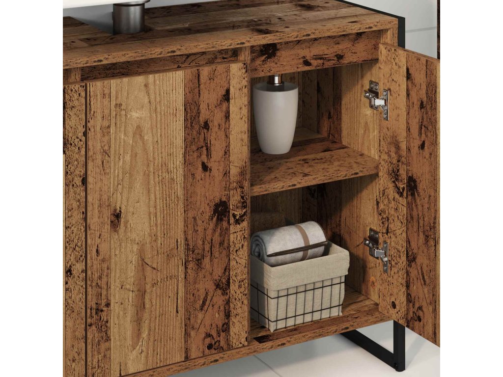 Naše industriální koupelnová skříňka z kompozitního dřeva je šikovné úložné řešení pro vaši koupelnu. Vypadá skvěle a je praktická, což z ní dělá ideální volbu pro organizaci toaletních potřeb a ručníků.