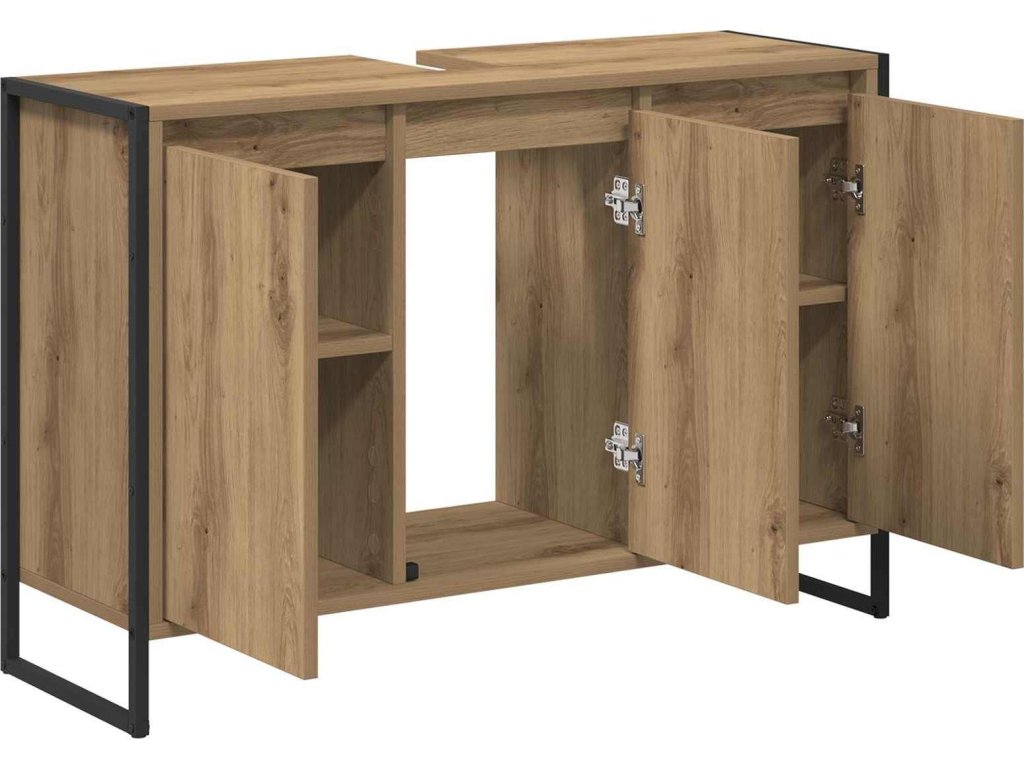 Naše industriální koupelnová skříňka z kompozitního dřeva je šikovné úložné řešení pro vaši koupelnu. Vypadá skvěle a je praktická, což z ní dělá ideální volbu pro organizaci toaletních potřeb a ručníků.