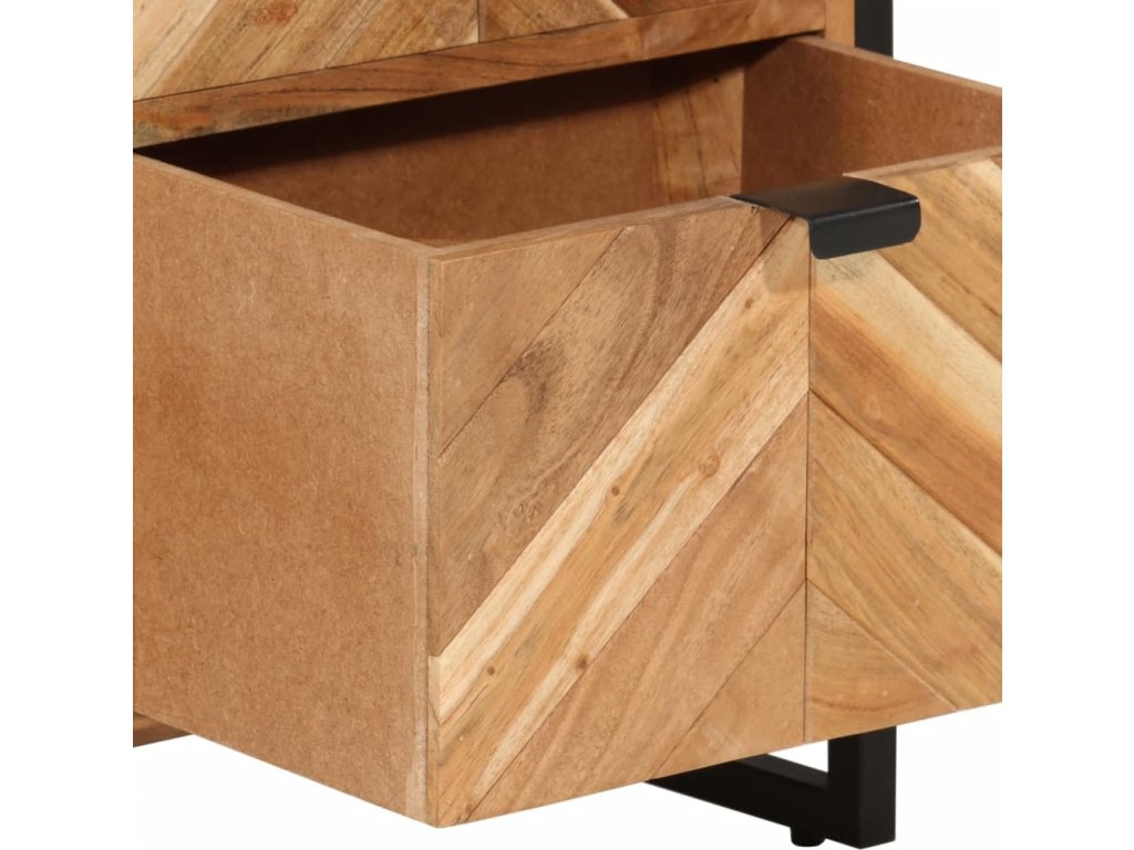 - Materiál: masivní akáciové dřevo s přírodní povrchovou úpravou, železo s práškovým nástřikem
