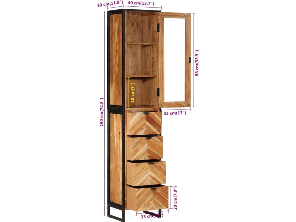 Koupelnová skříňka 40x27x190 cm železo a masivní akáciové dřevo [3217118]