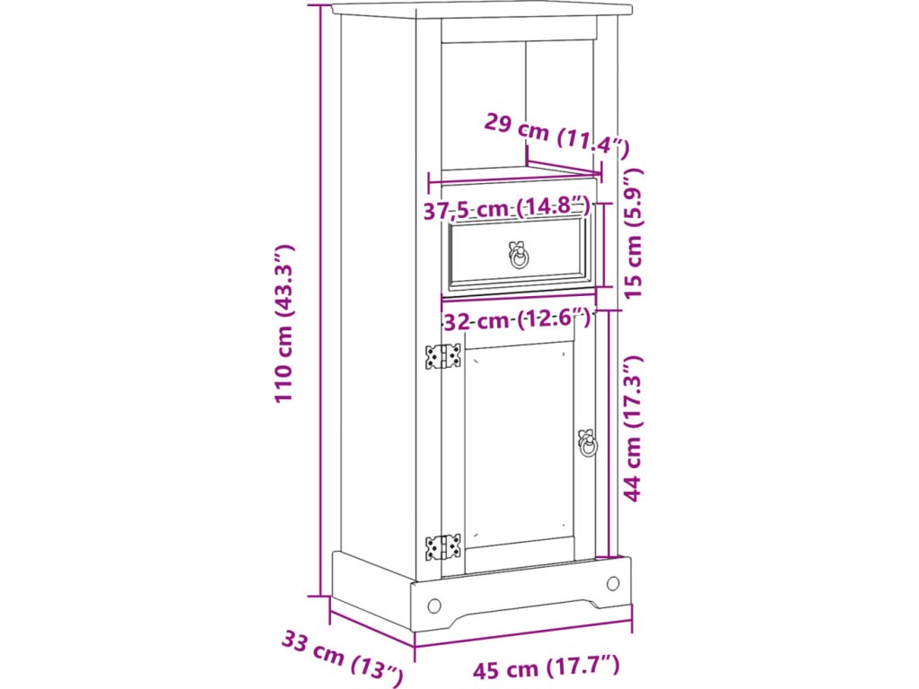 - Rozměry: 45 x 33 x 110 cm (Š x H x V)