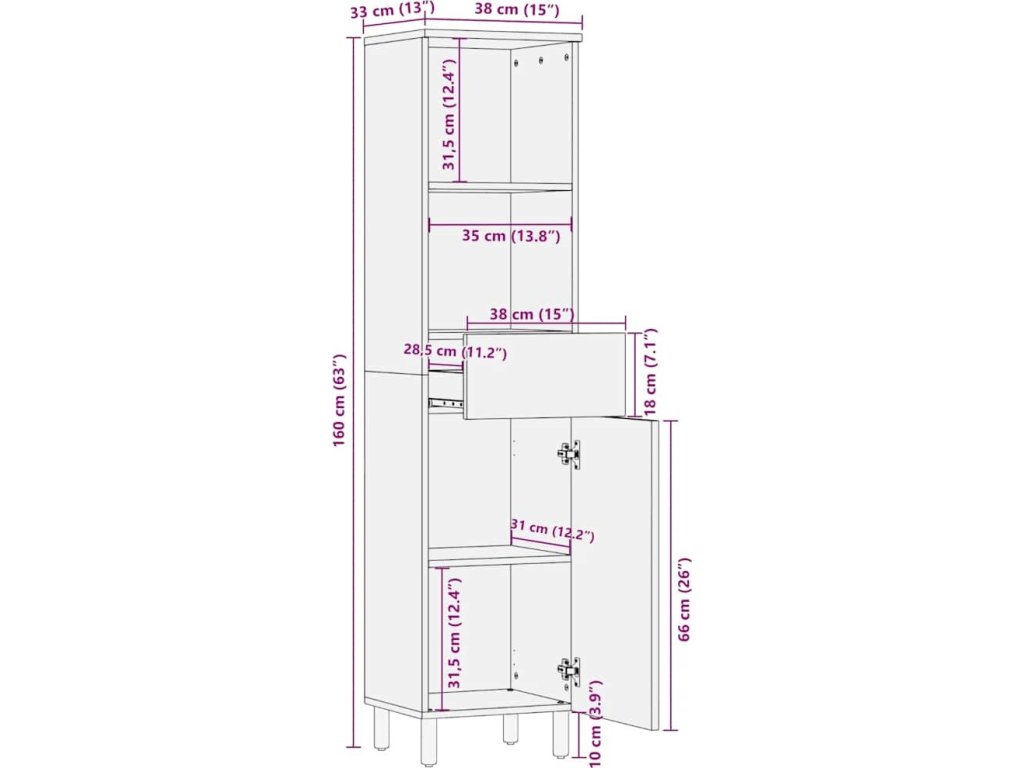 Koupelnová skříňka hnědá 38x33x160 cm Masivní dřevo Mango [4017742]
