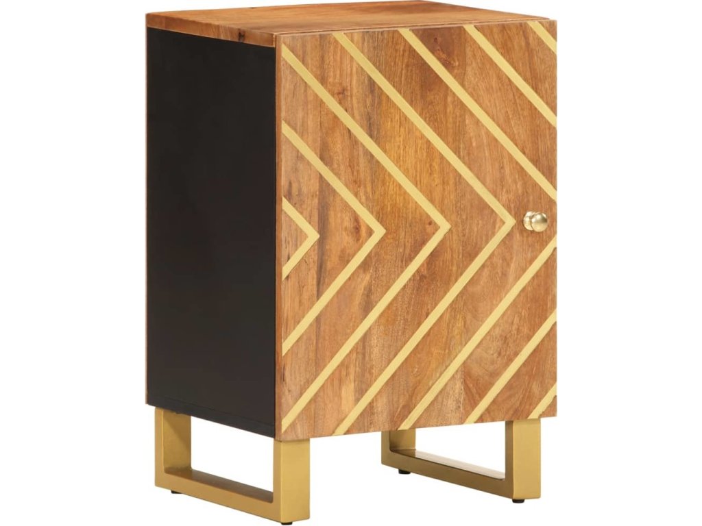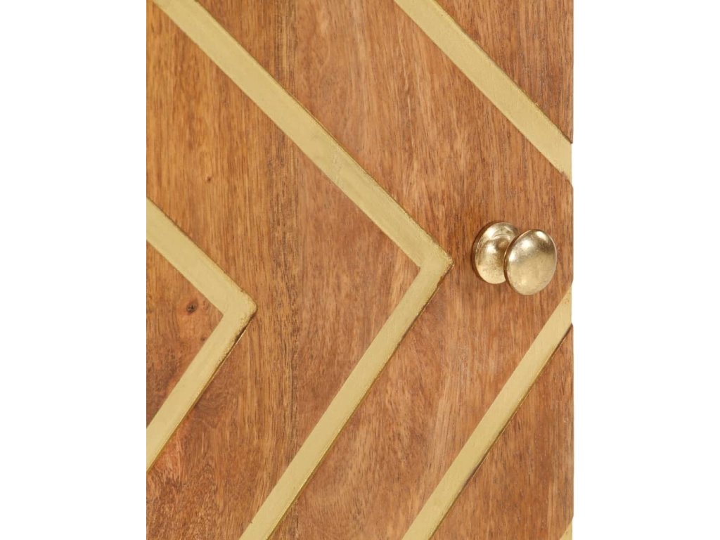 - Materiál: masivní mangovníkové dřevo s akáciově hnědou povrchovou úpravou, MDF, železo