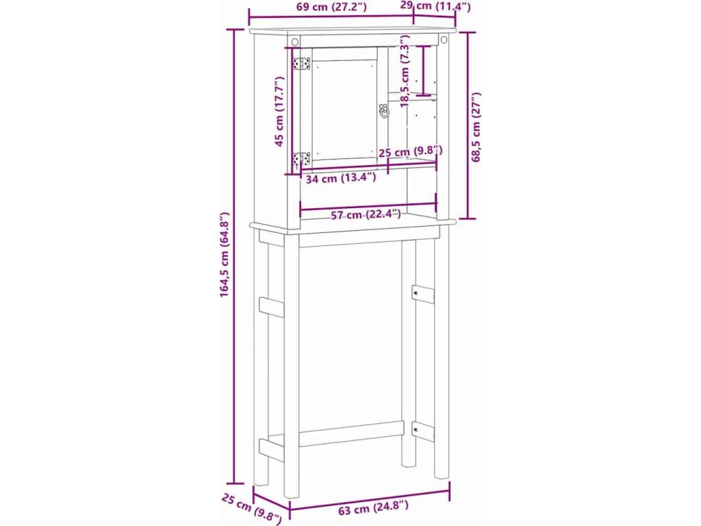 - Rozměry: 69 x 29 x 164,5 cm (Š x H x V)