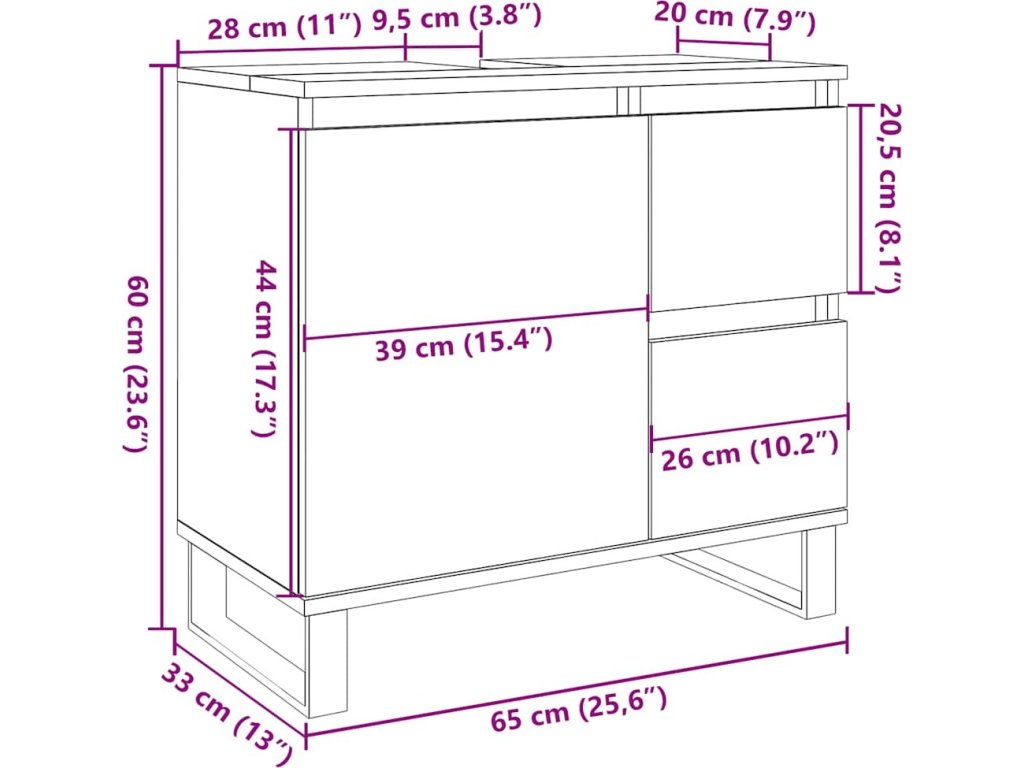 Koupelnová skříňka pod umyvadlo šedá 65 x 33 x 60 cm kompozit [857228]