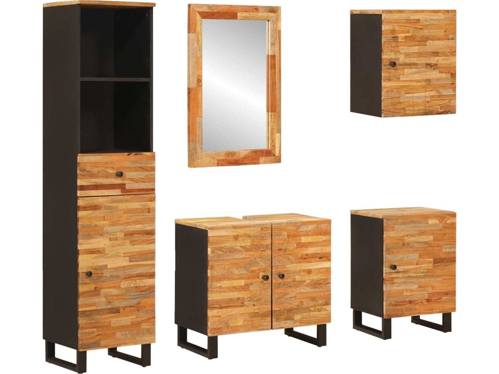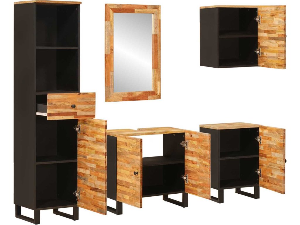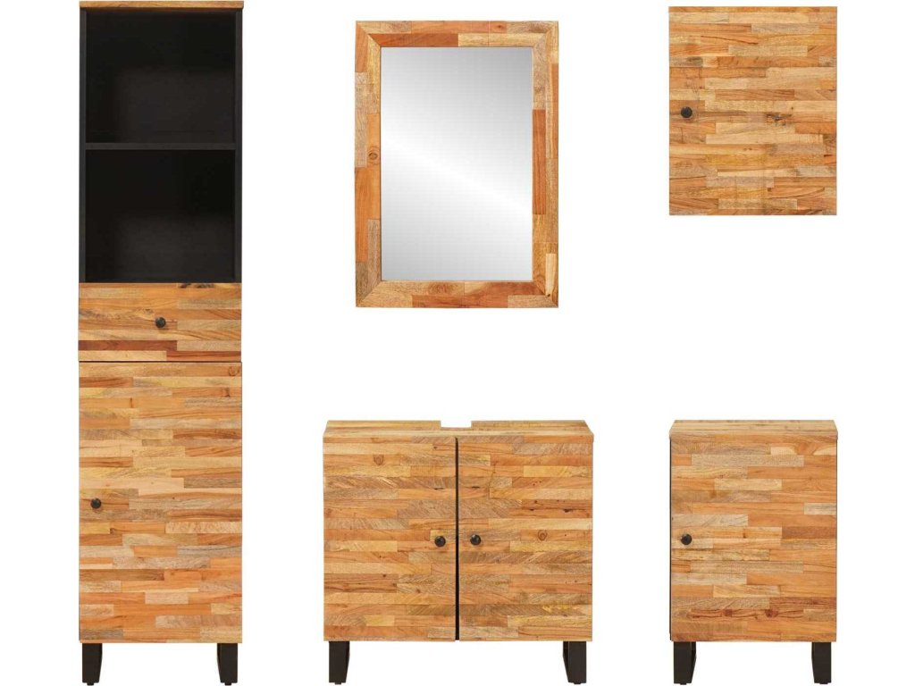Koupelnové sady s policí 5 pcs Přírodní Masivní mangové dřevo [3310105]