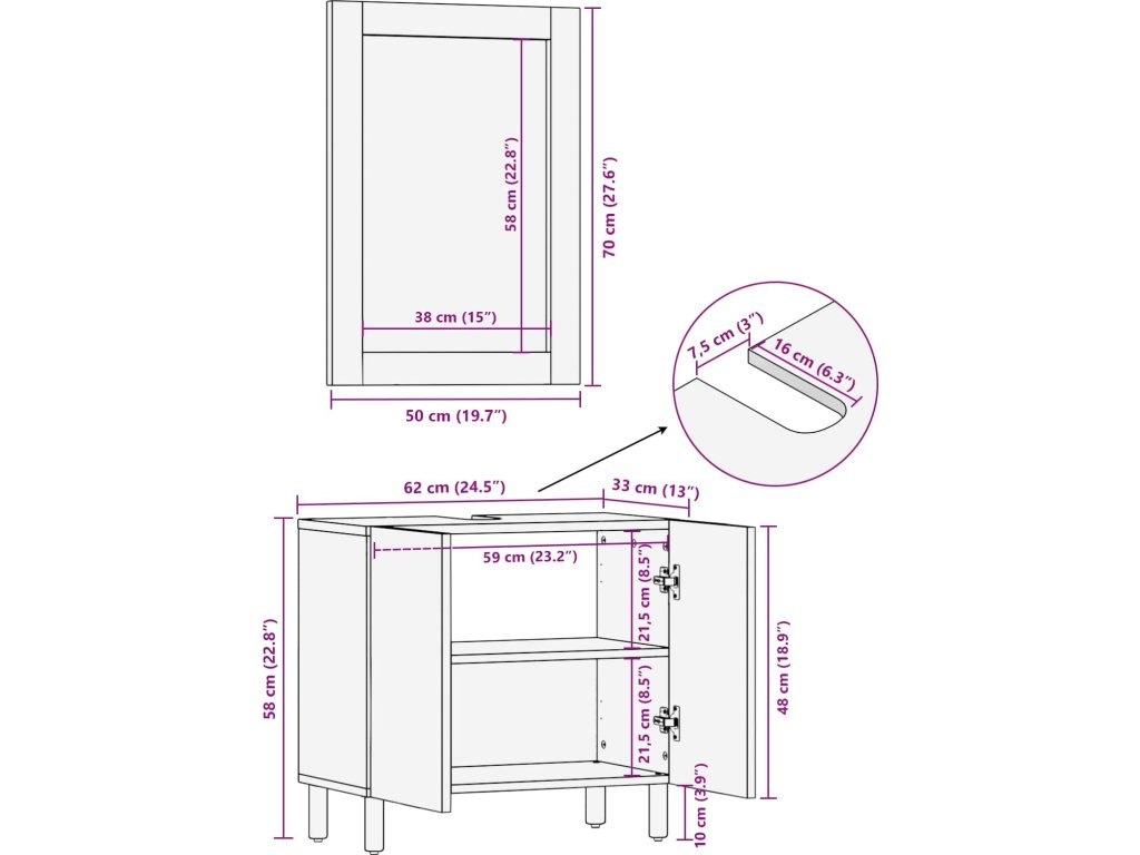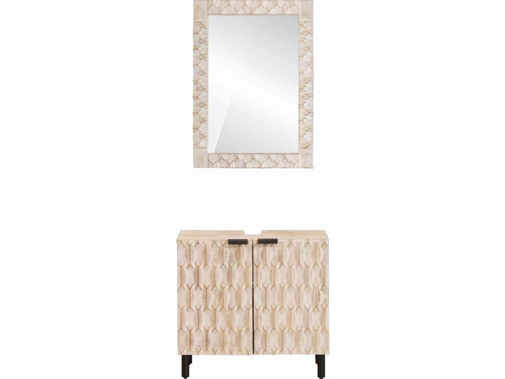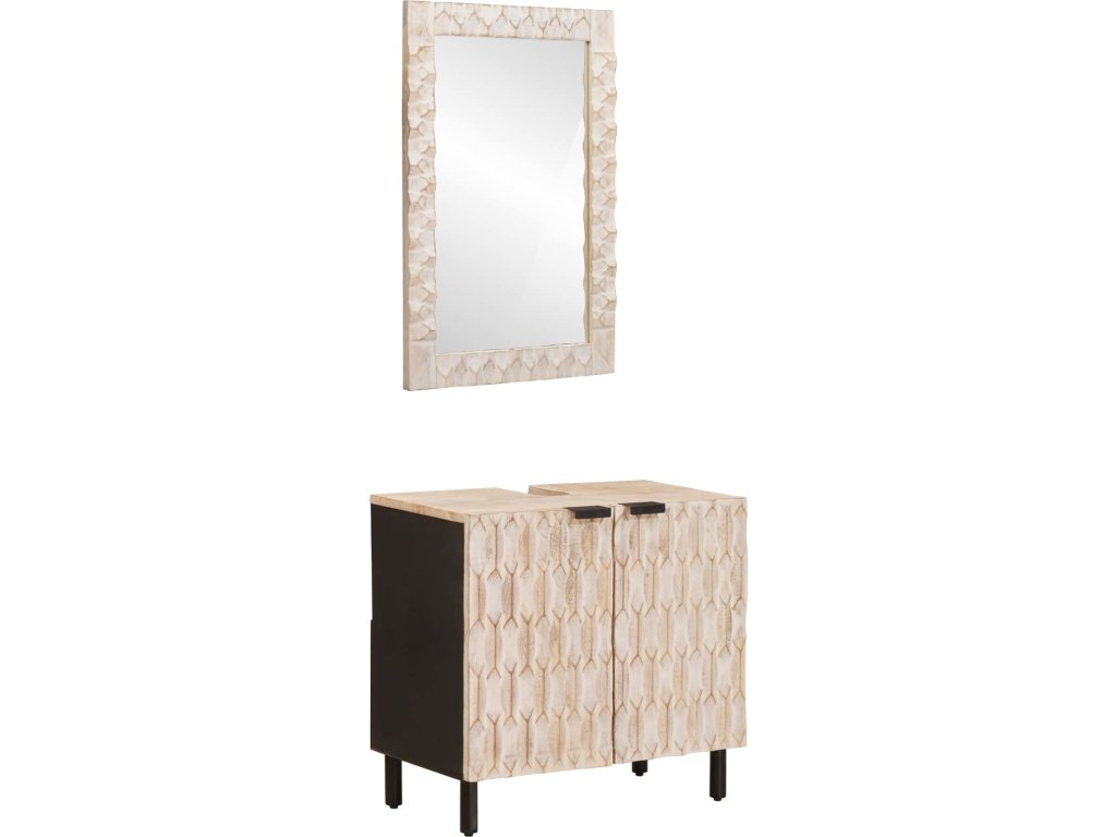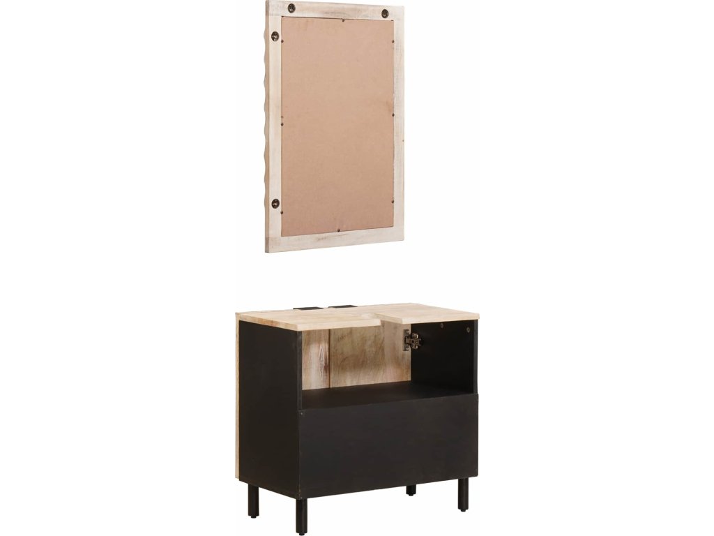 Tento moderní koupelnový set spojuje jednoduchost s funkčností a přináší hezký vzhled do interiérových koupelen. Je skvělý pro ty, co hledají minimalistické řešení, a umyvadlová skříňka se zrcadlem hezky doplní váš prostor díky čistým liniím. Přírodní krásy masivního mangového dřeva dodávají trvanlivost a estetiku.