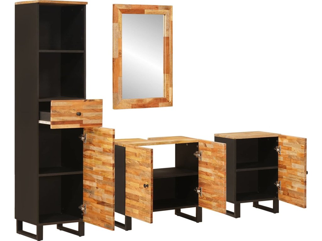 - Masivní mangové dřevo: Známo svou robustností a krásnými vzory, přirozený povrch dodá vaší koupelně teplo a šarm. Odolná konstrukce zajistí dlouhou životnost i odolnost proti každodennímu používání a vlhkosti.