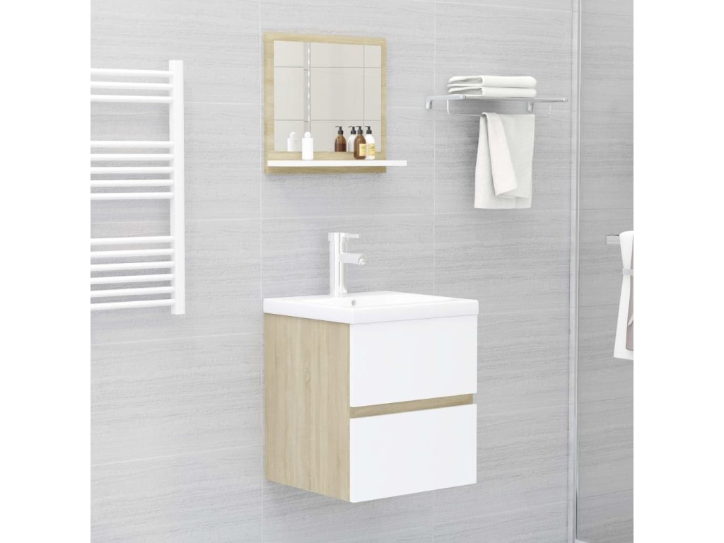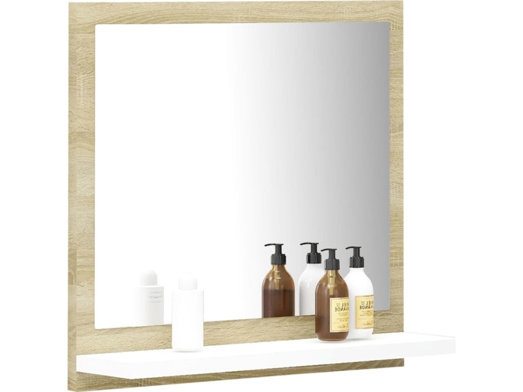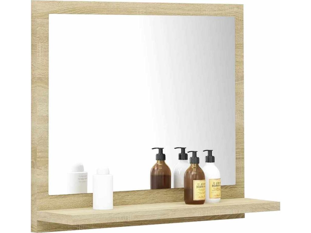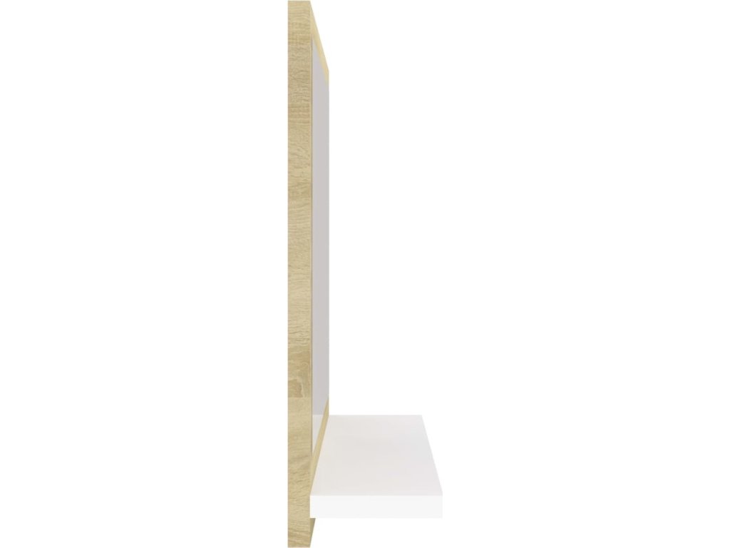 Nástěnné zrcadlo je vyrobené z kompozitního dřeva a akrylátu, vyniká proto svou odolností a stabilitou. Ve spodní části se nachází jedna malá polička, kam si můžete jednoduše naskládat různé hygienické a kosmetické potřeby, jako jsou mýdla, šampony, zubní pasty apod. Zrcadlo navíc snadno očistíte navlhčeným hadříkem.