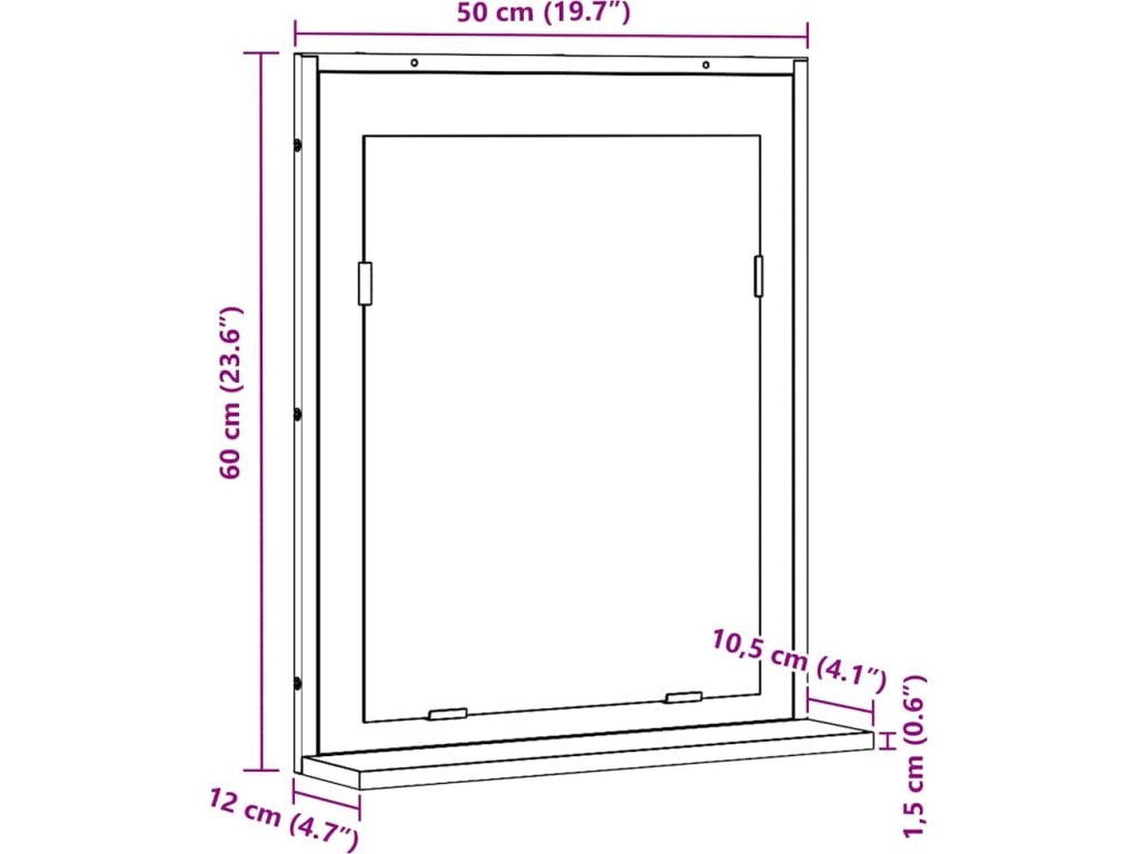 - Součásti: Zrcadlo má police z kompozitního dřeva, které ti poskytnou jednoduché řešení pro úložný prostor – ideální na kosmetiku nebo dekorace. Tyto police skvěle doplňují zrcadlo, takže je super pro organizaci i jako vizuální prvek.