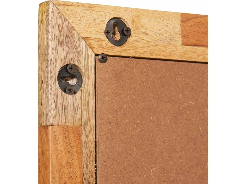 - Masivní mangové dřevo: Zrcadlo je vyrobeno z masivního mangového dřeva, které je pevné a má krásné vzory. Tento materiál zaručuje dlouhou životnost a dodává příjemný, přírodní vzhled, který se hodí do moderního interiéru.