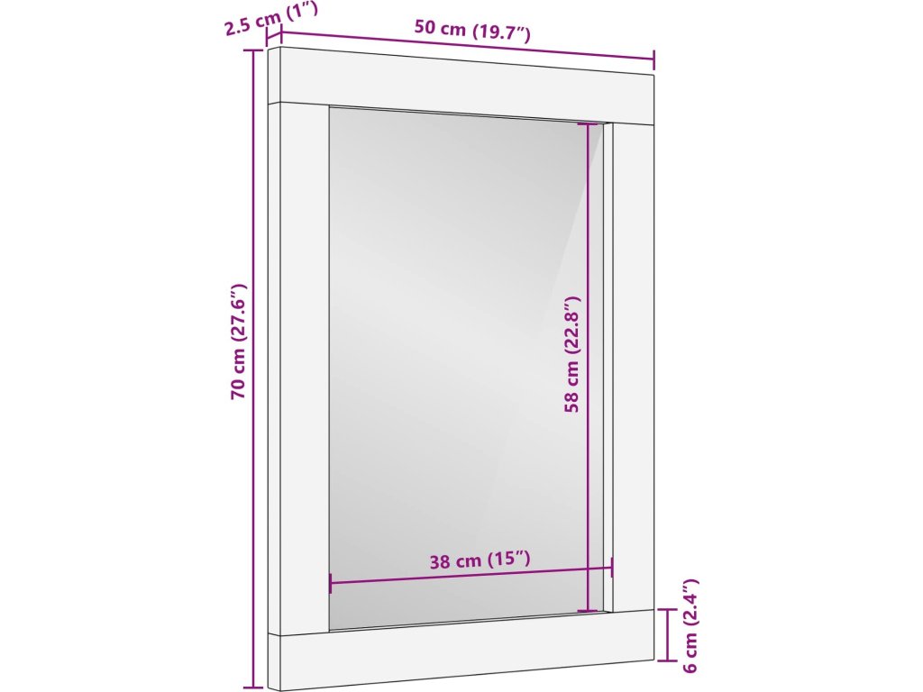 - Velikost zrcadla: 50 x 70 x 2,5 cm (D x Š x V)