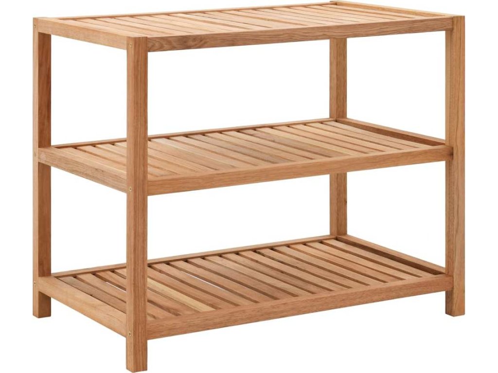 Koupelnový regál má tři police, které poskytují dostatek úložného prostoru pro ručníky a hygienické potřeby. Laťková konstrukce umožňuje dobré větrání věcí na policích. Regál je vyrobený z masivního ořechového dřeva, takže je velmi robustní a odolný.