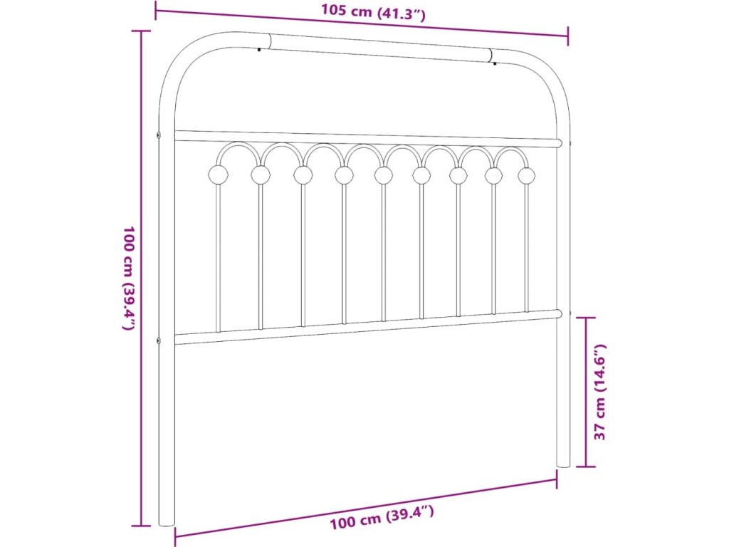 Kovové náhradní čelo postele 100 cm [376629]