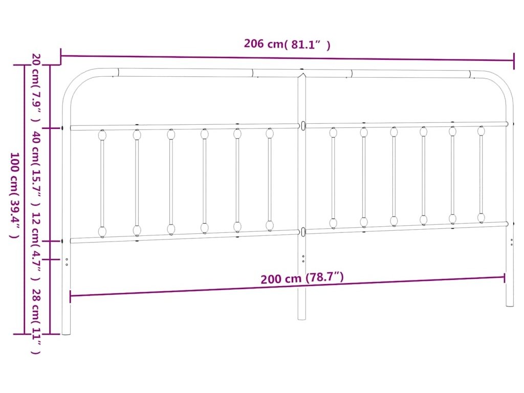 Kovové náhradní čelo postele 200 cm [352665]